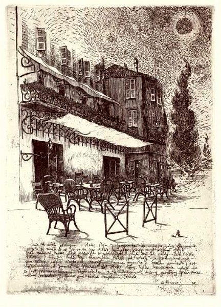 Cafe La Nuit (list z Arles) 34x24,5 (1998)